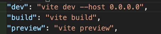 package.json 의 scripts 에서 dev 명령어를 아래와 같이 수정해주면 컴퓨터 ip 를 통해서도 접속이 가능해진다.