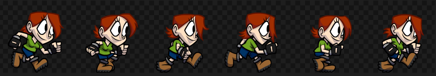 - sprite sheet 란 아래와 같은 그림을 말하는데, 일련의 동작들이 연속적으로 그려져 있는 그림을 말한다.