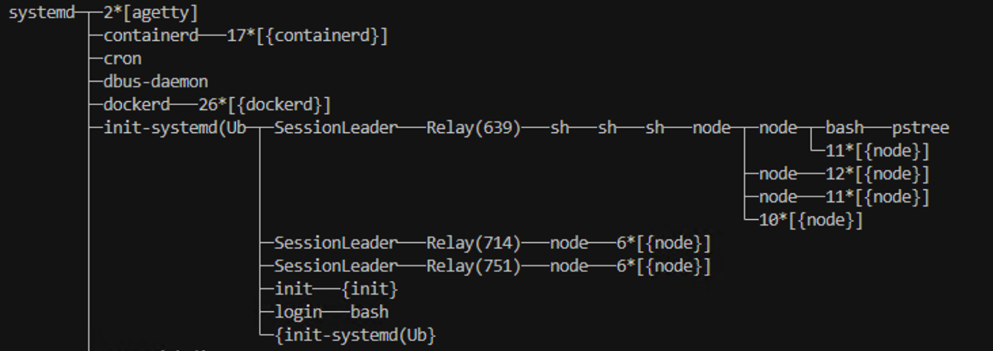 [Docker] localhost에서 전송한 데이터가 없습니다. (0) 2024.02.28 [SSH] WSL 원격 접속 에러 WARNING: REMOTE HOST IDENTIFICATION HAS CHANGED! (0) 2024.02.21 [WPF] json 파일 읽어오기 (0) 2024.02.01 [TYPE SCRIPT] 타입스크립트 @types 없는 모듈 에러 해결 방법 (0) 2024.01.31 [C#] WPF DispatcherTimer 으로 UI 업데이트 시, 버벅임 현상 (0) 2024.01.24 다음글이 없습니다.이전글이 없습니다.댓글 - pstree 명령어를 사용하여 실행되고 있는 프로세스들간의 연결구조를 트리형식으로 볼 수 있습니다.